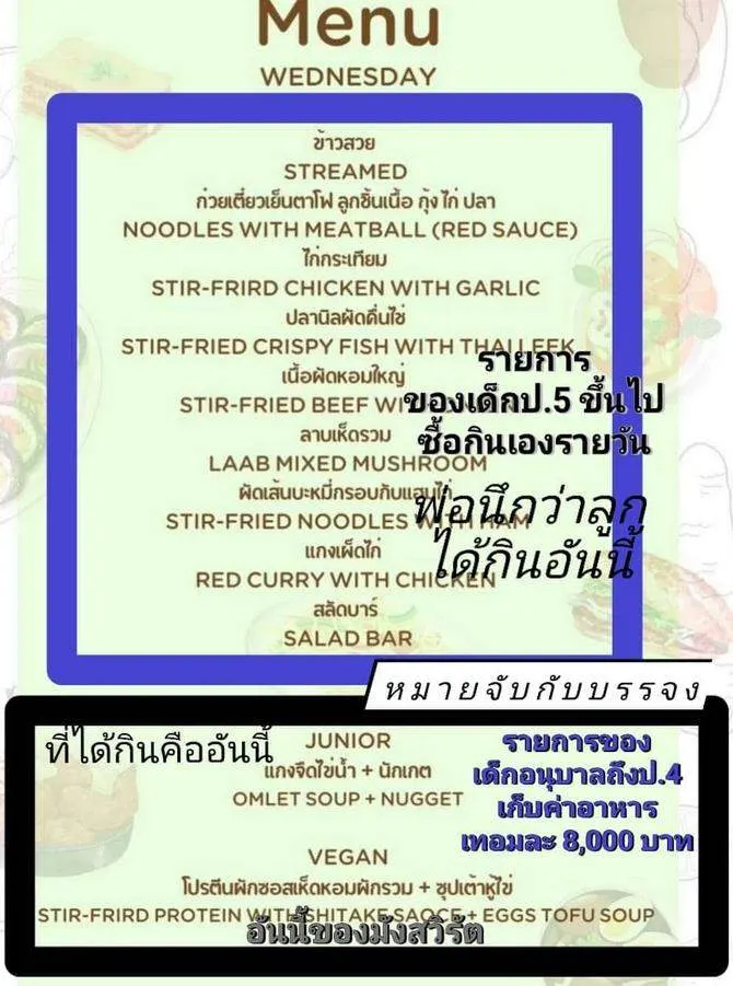 แฉสนั่น! "ปริมาณอาหารกลางวัน" โรงเรียนโรงเรียนเอกชนแถวห้างดังในเขตจอมทองกรุงเทพฯ ถามได้โภชนาการครบ 5 หมู่หรือไม่?