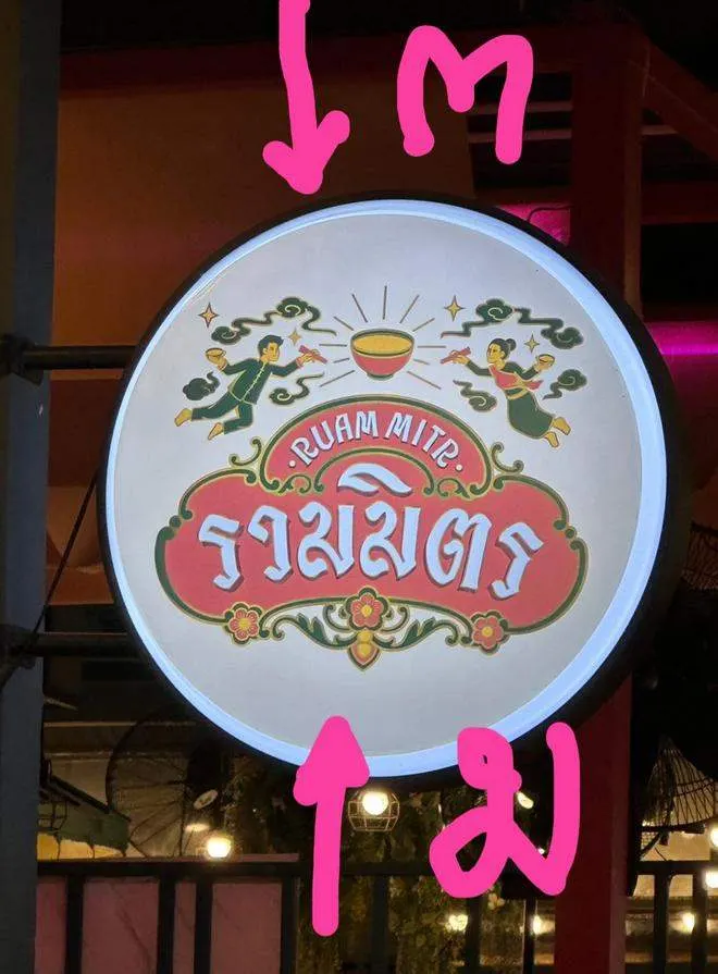 พร้อมมีตัวอักษรที่เป็นฟอนต์แบบไทยๆ ว่า “RUAY MITR รวยมิตร” แต่ ‘ร้านรวมมิตร’ ที่มีชื่อคล้ายกันนี้ “กลับใช้ภาพโลโก้เหมือนกันเด๊ะ” และตั้งชื่อคล้ายกันว่า “RUAM MITR รวมมิตร!”