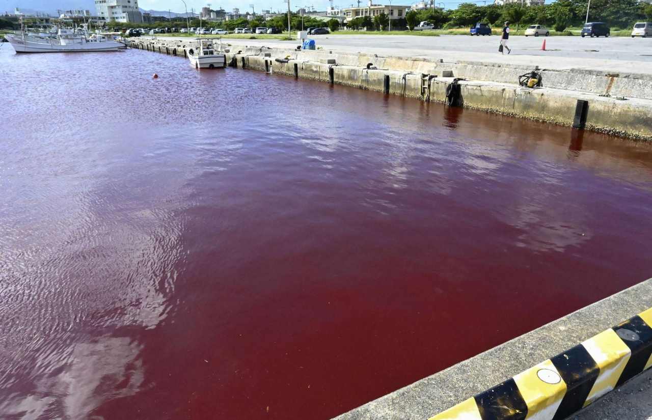 การรั่วไหลของโรงงานเบียร์ ทำให้ท่าเรือโอกินาวาเป็นสีแดง