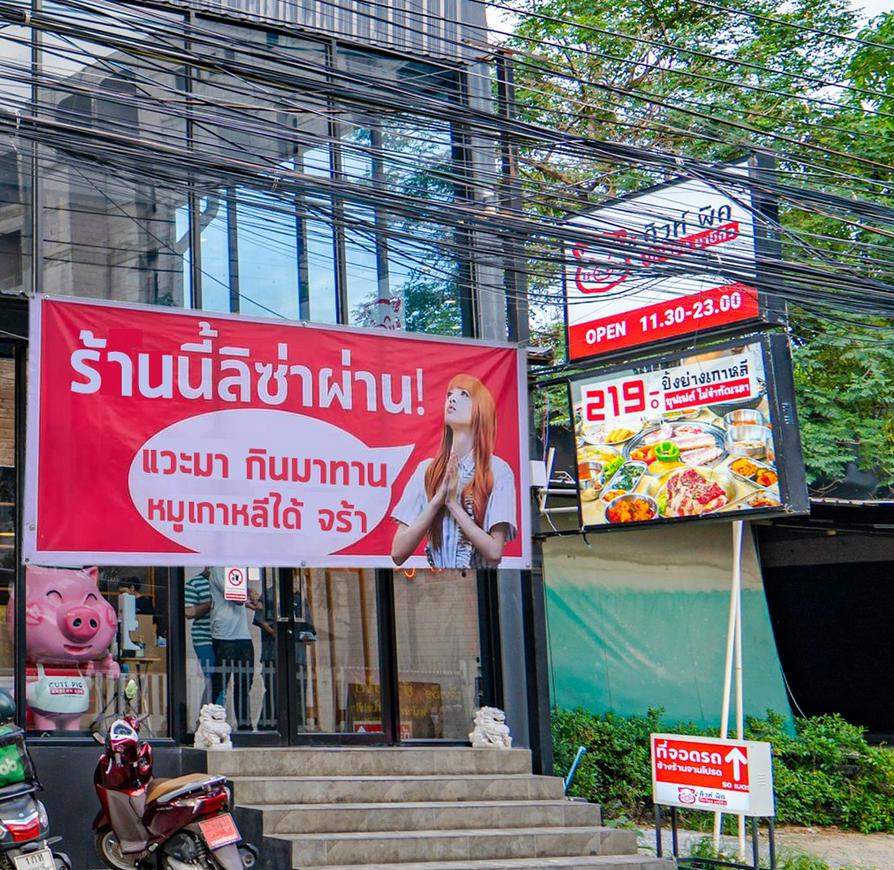 ในเฟซบุ๊กของร้านหมูกระทะแห่งหนึ่ง ในบางแสน ชื่อร้าน CUTE PIG Korean BBQ ได้โพสต์ภาพมีม (ภาพตลกๆ) เป็นภาพหน้าร้าน ที่ตัดต่อป้ายติดหน้าร้าน เป็นภาพของ ลิซ่า BLACKPINK เขียนข้อความว่า “ร้านนี้ลิซ่าผ่าน แวะมากินมาทาน หมูกระทะกันได้”