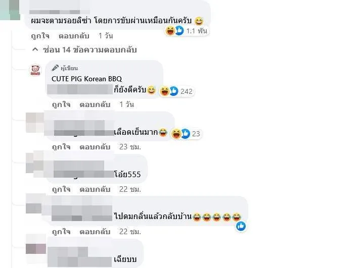 ในคอมเมนต์ของโพสต์ดังกล่าว มีคนเข้ามาคอมเมนต์ฮา ตอบโต้กับทางร้านกันเพียบ อาทิ “ผมจะตามรอยลิซ่า โดยการขับผ่านเหมือนกันครับ” ซึ่งทางร้านก็มาตอบว่า “ก็ยังดีครับ” อีกคอมเมนต์บอกว่า “อร่อยมากเลยครับ ร้านอยู่แถวไหนครับ” ทางร้านก็ตอบว่า “บางแสนครับ แต่รู้ได้ไงว่าอร่อย”