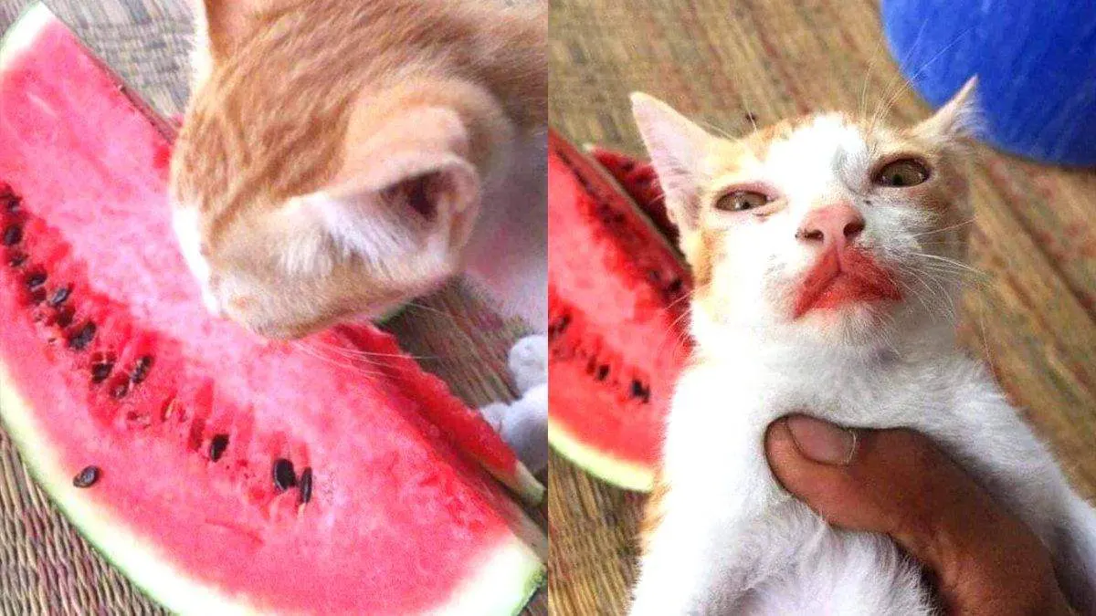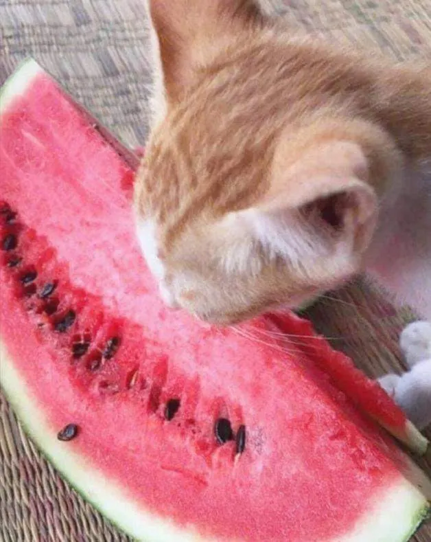 หลักฐานคาปาก! ทาสเผยภาพเผลอแค่แป๊ปเดียว "แมวส้ม" ตัวแสบแอบย่องมากินแตงโม อย่างเอร็ดอร่อย