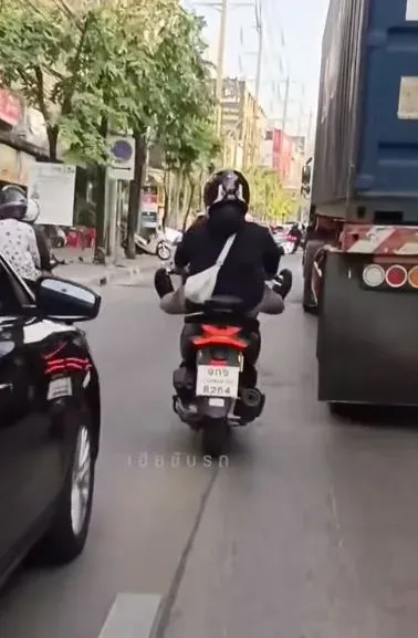 หนุ่มขี่มอเตอร์ไซค์ยกเท้าถีบรถชาวบ้านไปทั่ว