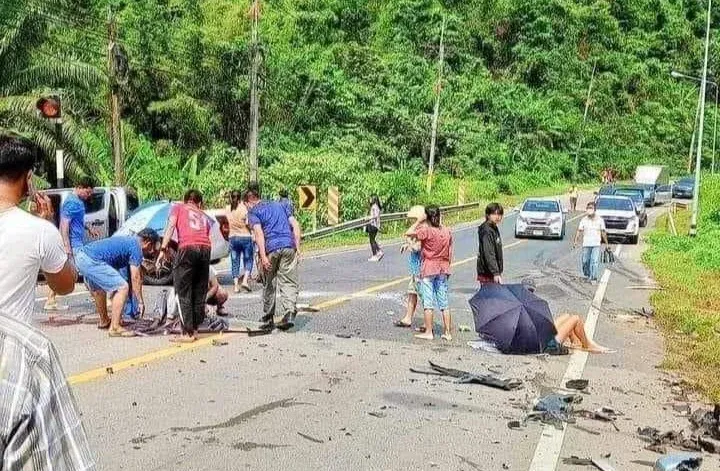 พังงา-อุบัติเหตุรถกระบะเสียหลักชนรถพ่วง10ล้อ บาดเจ็บระนาว