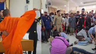 พระจับใบดำ-ใบแดง กองเชียร์เป็นลม 3 คนรวด คนโดนใบแดงสุดท้ายแทบทรุด