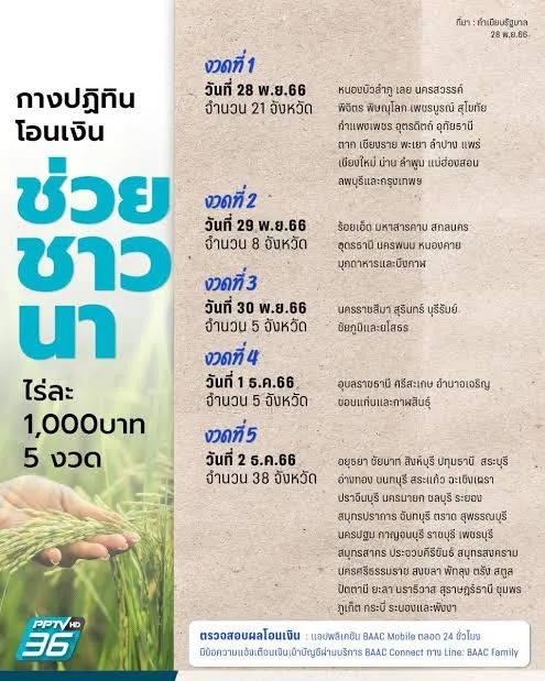 ธ.ก.ส. โอนช่วยชาวนาไร่ละ1,000 บาท เปิดช่องตรวจสอบสิทธิ์ เช็กที่นี่ได้เงินเมื่อไร