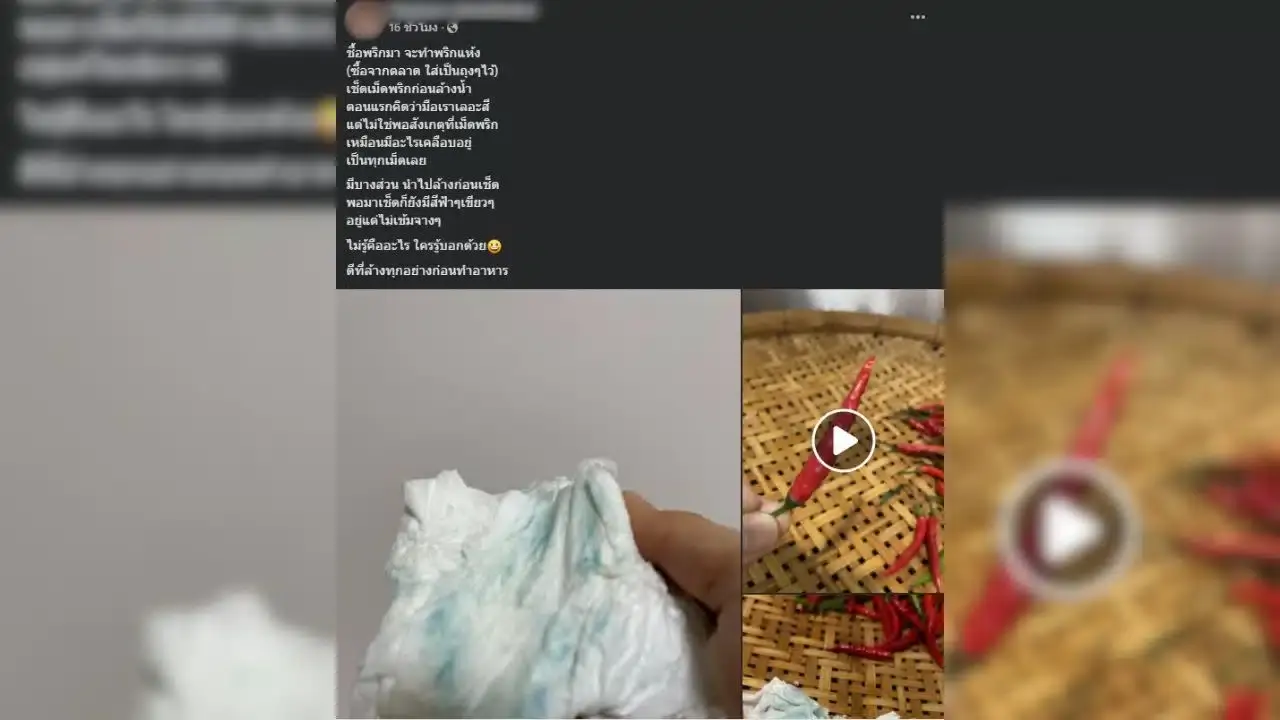 สาวโพสต์ในกลุ่ม พบคราบสีฟ้าบนพริก สงสัยว่าเป็นอะไร เผยว่าเป็นสารที่ถูกแบนในยุโรป