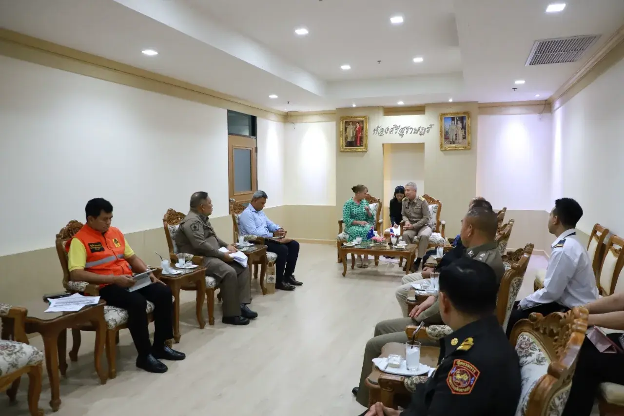 มีนายบันดาล สถิรชวาล รองผู้ว่าราชการจังหวัดสุราษฎร์ธานี เป็นผู้แทนมาให้การต้อนรับ เพื่อหารือเรื่องความปลอดภัยของนักท่องเที่ยวในพื้นที่จังหวัดสุราษฎร์ธานี โดยมีหน่วยงานที่เกี่ยวข้องเข้าร่วมให้การต้อนรับ