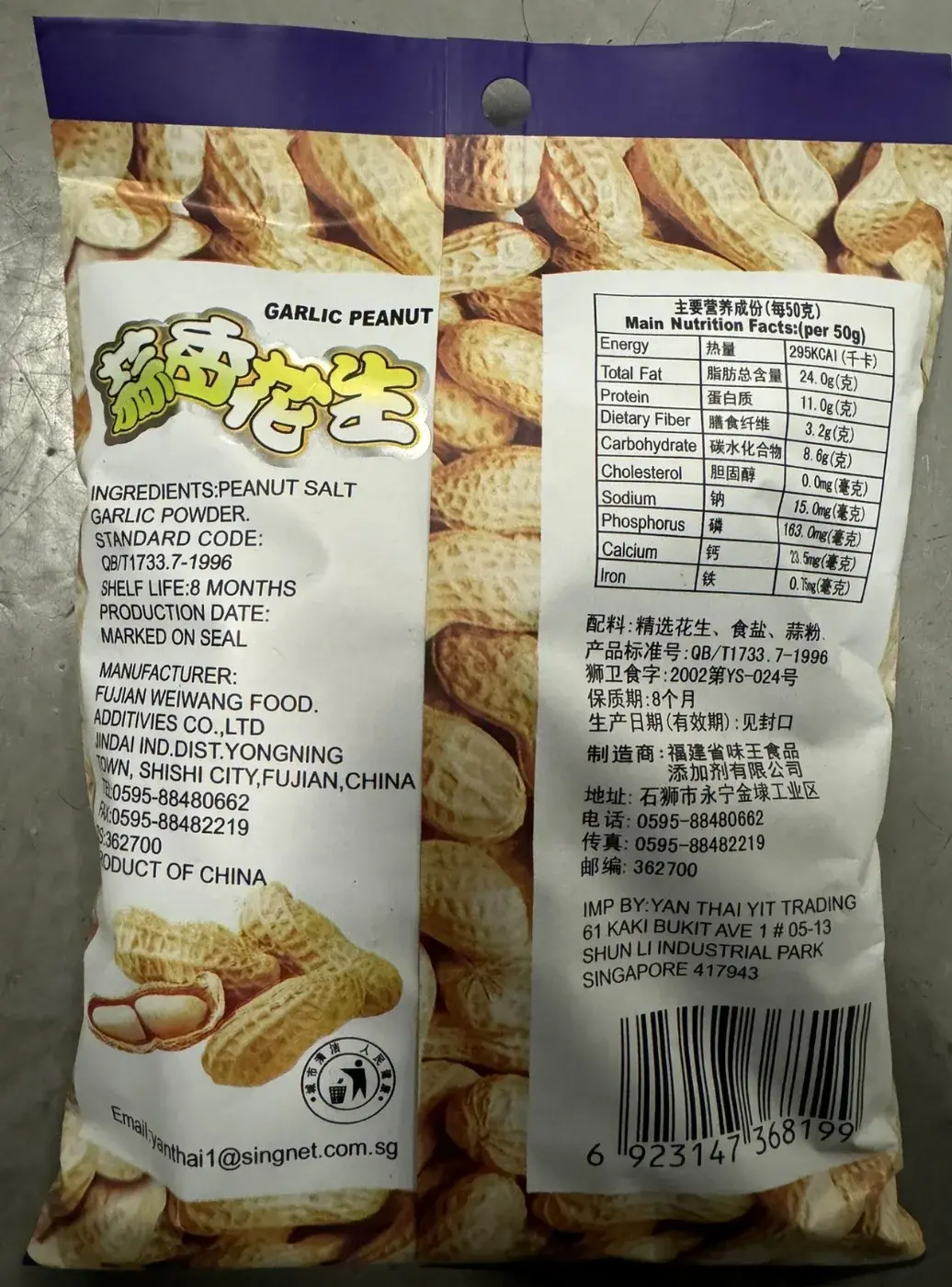 สำนักงานอาหารสิงคโปร์ ได้ออกมากล่าวว่า "ถั่วลิสงยี่ห้อหนึ่งจากจีน กำลังถูกเรียกคืน เนื่องจากพบสารให้ความหวานเทียม [ไซคลาเมต] โดยผลิตภัณฑ์ดังกล้าว เป็นถั่วลิสงผสมกระเทียม ถูกผลิตในประเทศจีนแผ่นดืนใหญ่ มีวันหมดอายุคือ 8 เมษายน 2025 และ มีน้ำหนักถึงละ 150 กรัม โดยบริษัทนำเข้าคือ "หยาน ไท่ ยิด" เรียกคืนผลิตภัณฑ์ดังกล่าว จากประเทศสิงคโปรทั้งหมดทันที!!"