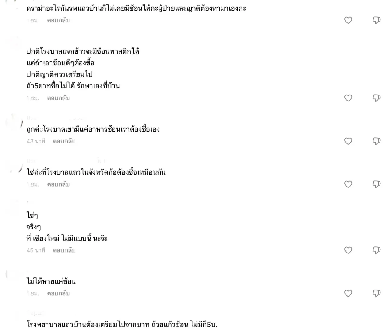 ดราม่าโรงพยาบาลไม่มีช้อนให้ผู้ป่วยกินข้าว เหตุช้อนหายรายวัน อยากได้ต้องชื้อคันละ 5 บาท 🙂↔️