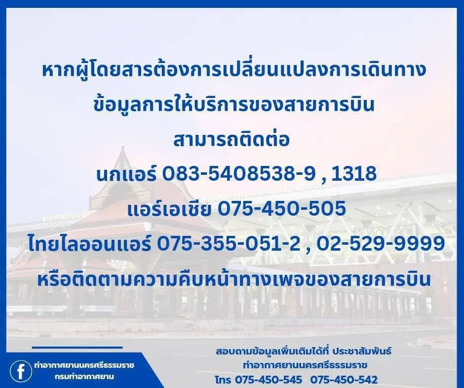 ประกาศ 📢 ท่าอากาศยานนครศรีธรรมราช แจ้งข่าวประชาสัมพันธ์ วันที่ 16 ธันวาคม 2567 ✈️✈️