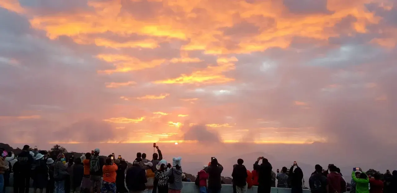 ตั้งแต่ช่วงเช้ามืด นักท่องเที่ยวเริ่มเดินทางขึ้นไปบนยอดดอยเพื่อชมพระอาทิตย์ขึ้น พร้อมสัมผัสความหนาวเย็นที่ทำให้ทุกคนรู้สึกสดชื่นและตื่นเต้น นักท่องเที่ยวบางกลุ่มยังได้เห็นปรากฏการณ์ "แม่คะนิ้ง" หรือการเกิดน้ำค้างแข็งบนยอดหญ้าและต้นไม้ ซึ่งเป็นภาพที่สวยงามและน่าตื่นตาตื่นใจ