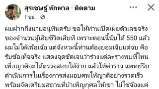 บิ๊กโจ๊กฝากถึงนายกอนุทิน ให้เผยเลขผู้เสียชีวิตจริงจากเหตุการณ์น้ำท่วมสักที