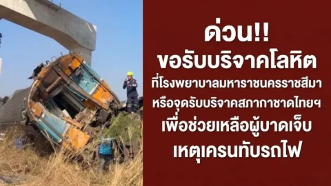 พลังน้ำใจคนไทย! ร่วมบริจาคโลหิตช่วยเหลือผู้บาดเจ็บ เหตุเครนถล่มทับรถไฟสีคิ้ว