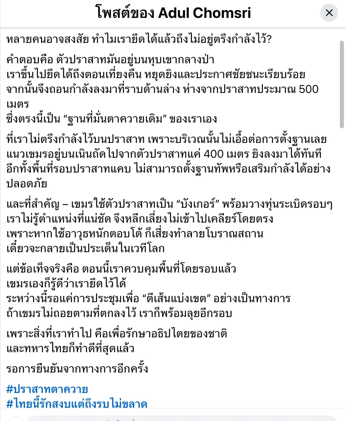 ชัดๆ จากกองทัพ ไทยจากกรณีนักข่าวชาวกัมพูชา โพสต์ภาพตัวเองและทหารเขมร ผ่านเฟซบุ๊ก พร้อมข้อความ วัดตาควาย 30 ก.ค. 68 ในทำนองว่าเขมรยึดปราสาทตาควายได้แล้ว สุดโป๊ะ พบมุมภาพมีทุ่นระเบิด PMN-2 วางไว้ 5 ลูn