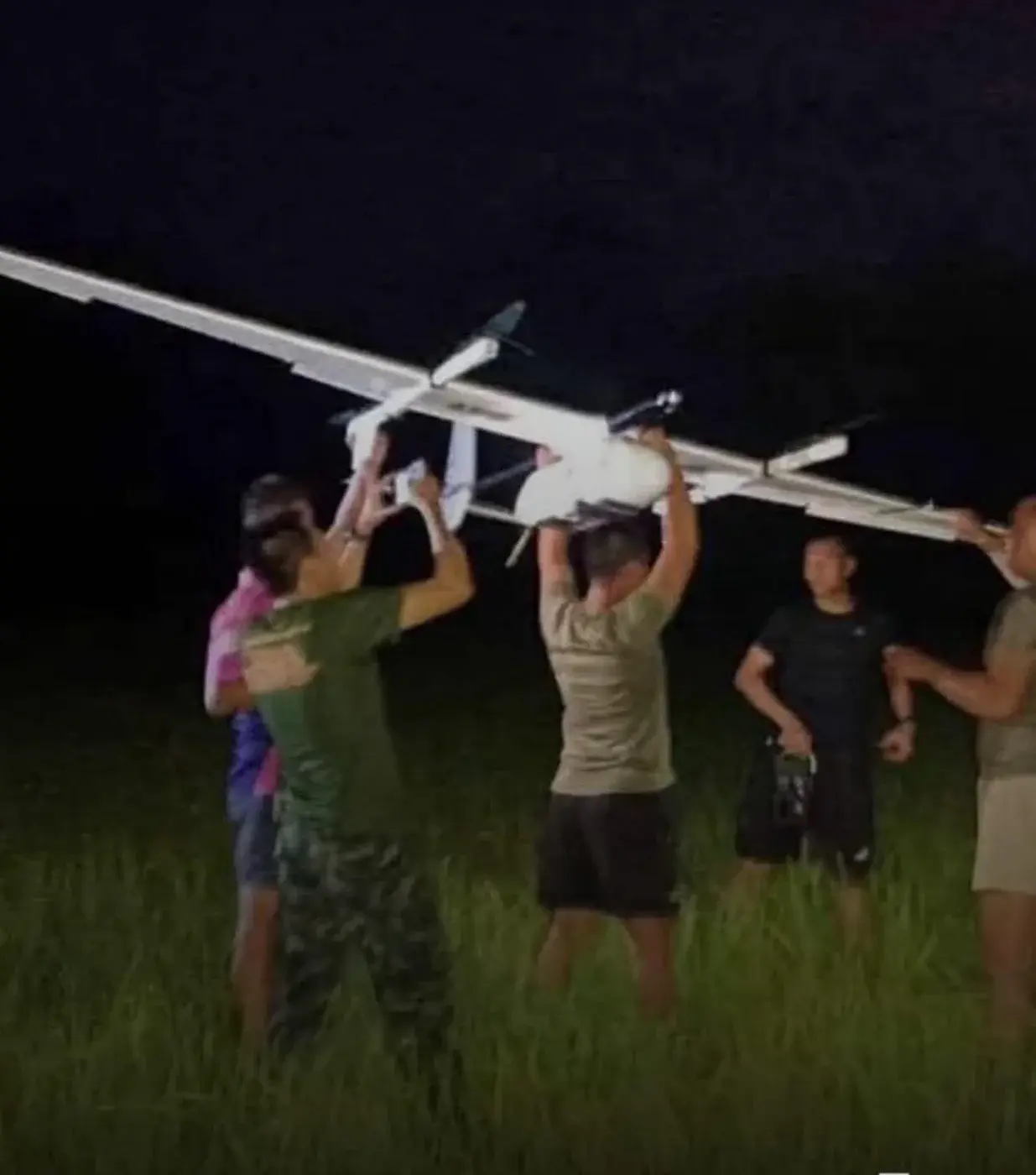 พบโดรนขนาดใหญ่1 ลำ ตกกลางทุ่งนา คาดว่าเจ้าหน้าที่ไทยสกัดร่วง