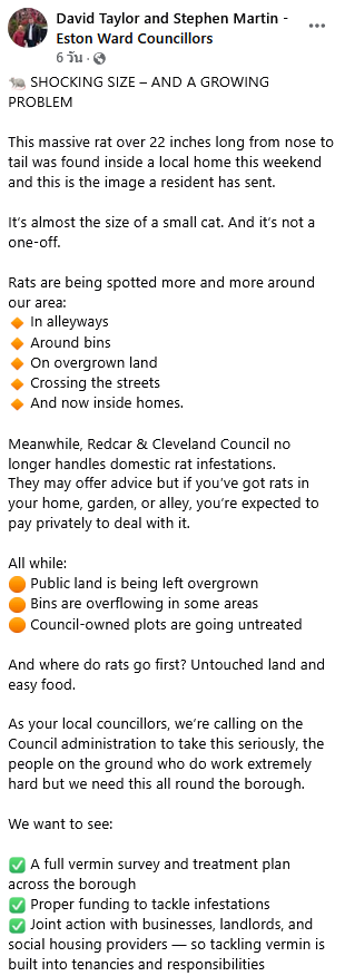 ภาพที่กำลังเป็นไวรัลในตอนนี้ คือ ภาพของหนูยักษ์ตัวหนึ่ง ที่ชาวบ้านค้นพบและจับมาได้ ซึ่งหนูตัวดังกล่าว มีความยาวลำตัว 22 นิ้ว ซึ่งเทียบเท่ากับขนาดสุนัขตัวเล็ก ที่เมืองนอร์แมนบี เมืองเรดคาร์ คลีฟแลนด์ มณฑลนอร์ทยอร์กเชอร์ ประเทศอังกฤษ มันอาจเป็นหนูดำที่ใหญ่ที่สุด เท่าที่เคยพบในอังกฤษ