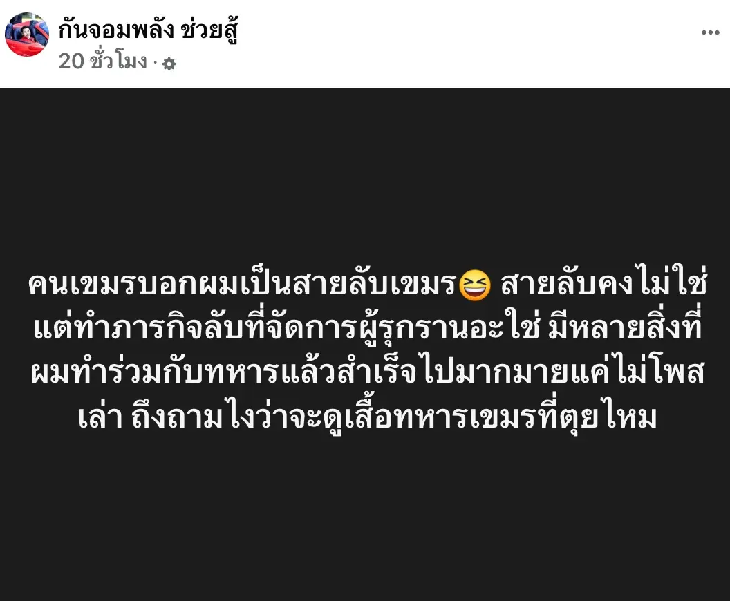 ซึ่งล่าสุดเขมรปูดข่าว บอก ‘กันจอมพลัง’ เป็นสายลับเขมร แต่คนไทยไม่มีใครเชื่อ