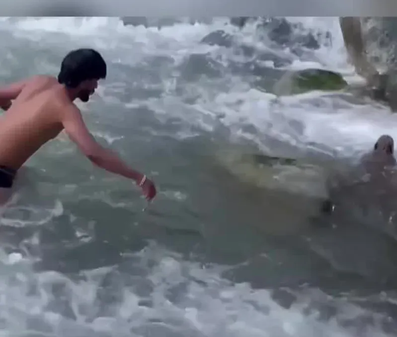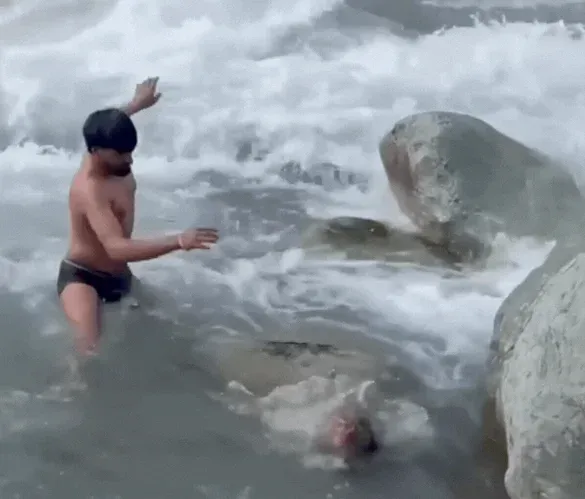 คลิปชายเสี่ยงชีวิต โดดลงน้ำเชี่ยว เพื่อช่วยลิงดุร้าย กำลังเป็นไวรัล