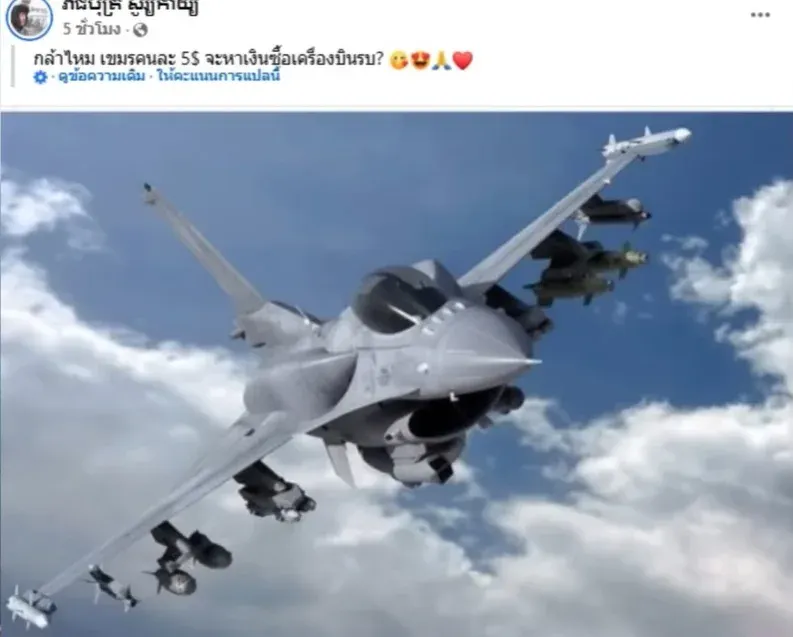 โซเชียลเขมรเล่นใหญ่! แห่ระดมทุนจาก ปชช. หวังซื้อเครื่องบิน F-16 มาถล่มไทย
