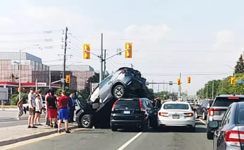 เกิดอุบัติเหตุรถยนต์สุดประหลาด ใกล้ถนนวูดไบน์และสตีลส์ ซึ่งเป็นถนนที่มีชาวจีนอาศัยอยู่หนาแน่น ในเมืองมาร์กแฮม ออนแทรีโอ ประเทศอเมริกา หลังจากการชนกัน โดยรถยนต์คันหนึ่งถูกทับซ้อนกัน ทำให้ผู้เห็นเหตุการณ์รู้สึกเหลือเชื่อ...