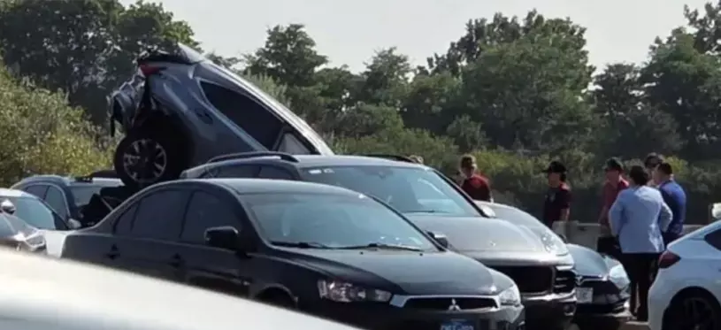 อุบัติเหตุทางถนนไม่ใช่เรื่องแปลก แต่ชาวเน็ตหลายคนรู้สึกประหลาดใจ ที่พบว่ารถยนต์หลังเกิดอุบัติเหตุดูเหมือนถูกวางซ้อนกัน...