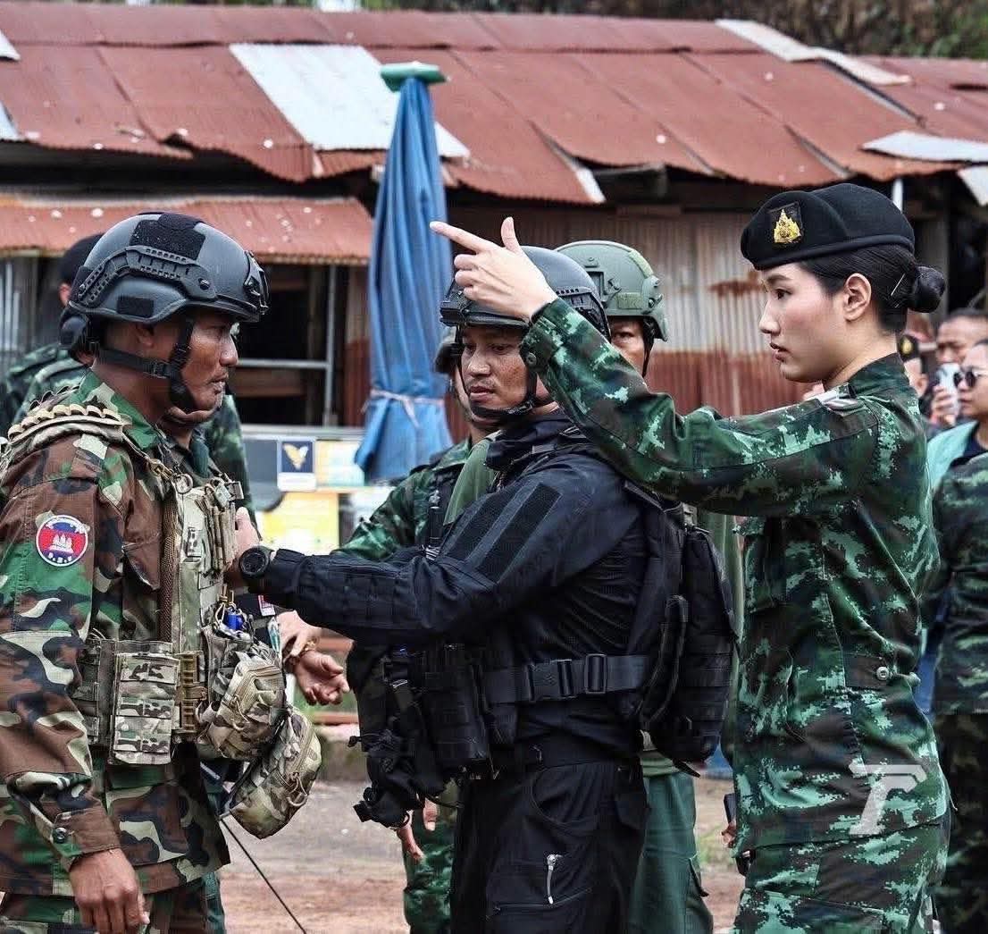 ภาพไวรัลไทย ทหารหญิงไทยชี้นี้วออกคำสั่งให้ทหารเขมรถอยกลับไปยังที่ตั้งที่ช่องอานม้าฝั่งเขมร