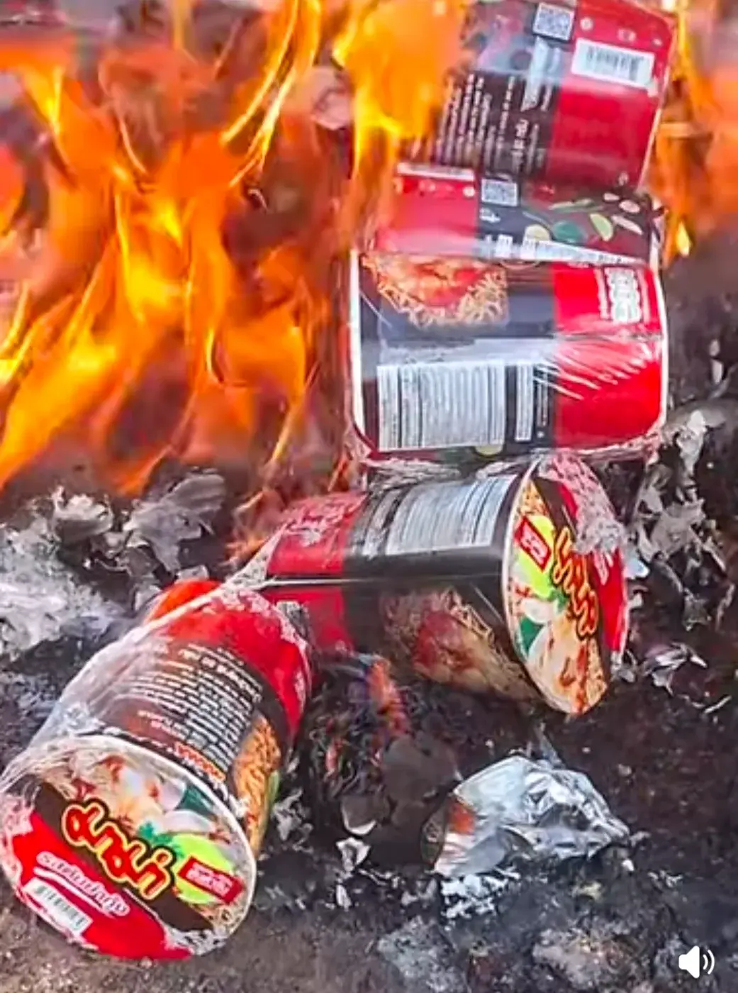 อินฟลูฯ เขมรทำคอนเท้นต์ถ่ายคลิปเผามาม่าคัพต้มยำกุ้ง ประกาศแบนสินค้าเสียม สร้างยอดวิว คนเขมรแห่คอมเม้นท์ขอบคุณอินฟูลฯ เผาสินค้าเสียมเพื่อชาติ