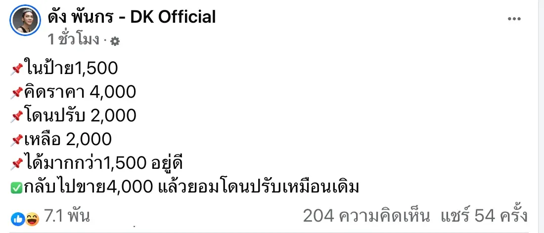 ดัง พันกร โพสต์ แบบนี้ร้านเจ๊ไฝ ยอมโดนปรับเหมือนเดิมได้กำไรมา 500 จากการโดนปรับ