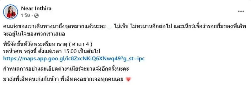 ดิฉันขอร่วมแสดงความเสียใจกับคุณเนียร์ และครอบครัวของผู้เสียชีวิตด้วยนะคะ หวังว่าทุกท่านจะมีกำลังใจเข้มแข็ง และผ่านช่วงเวลาแห่งความเจ็บปวดที่ต้องสูญเสียบุคคลอันเป็นที่รัก ไปแบบไม่มีวันกลับ