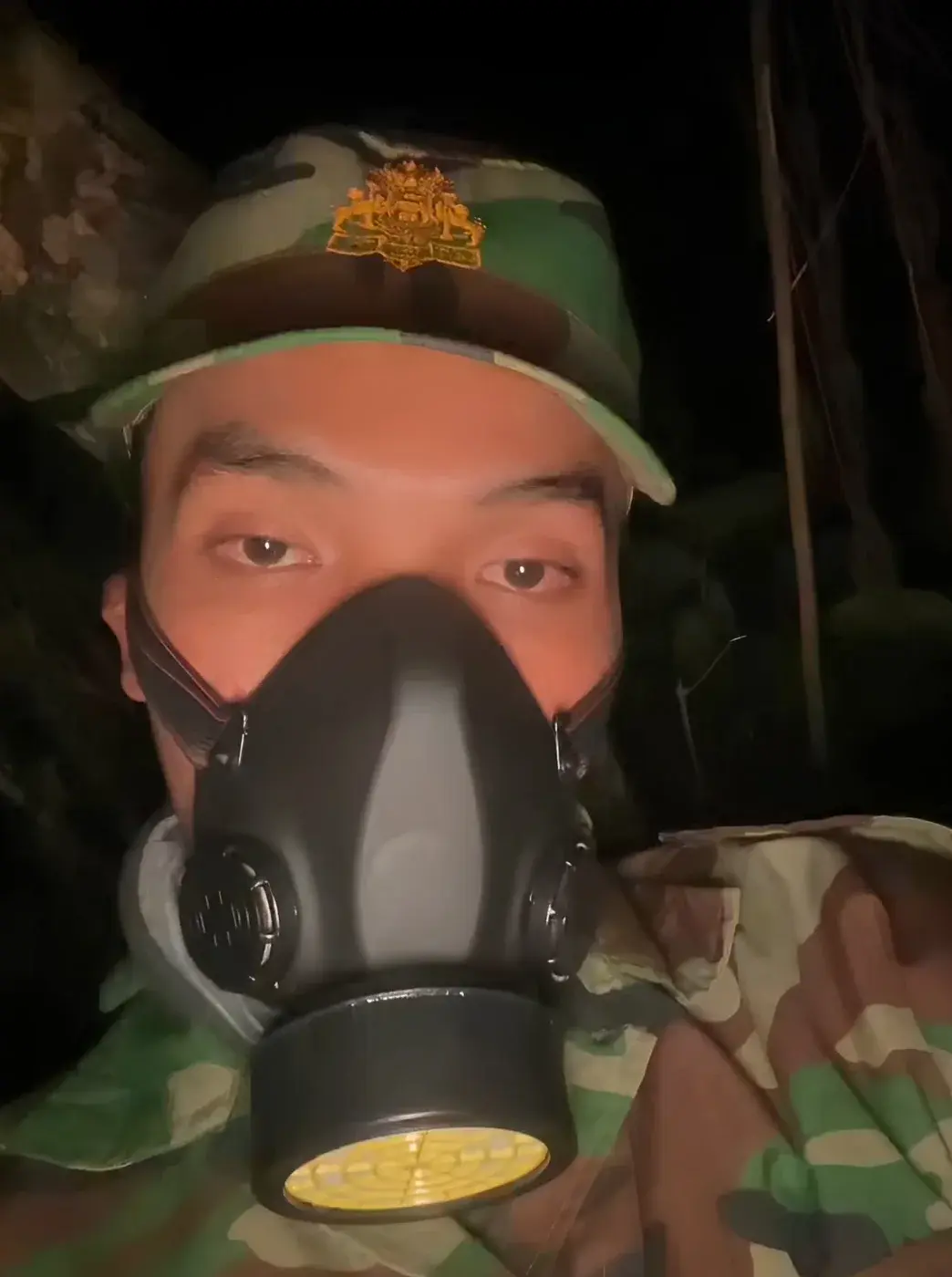 ทหารเขมรโพสต์ "ตอนนี้ผมอยากจะกลับไปนอนที่บ้าน มันทรมานนะ นอนไม่เต็มอิ่มจะครบเดือนแล้ว คืนนี้ผมต้องอยู่ยาม และต้องใส่มัน กลัวควันพิษของพวกเสียม"