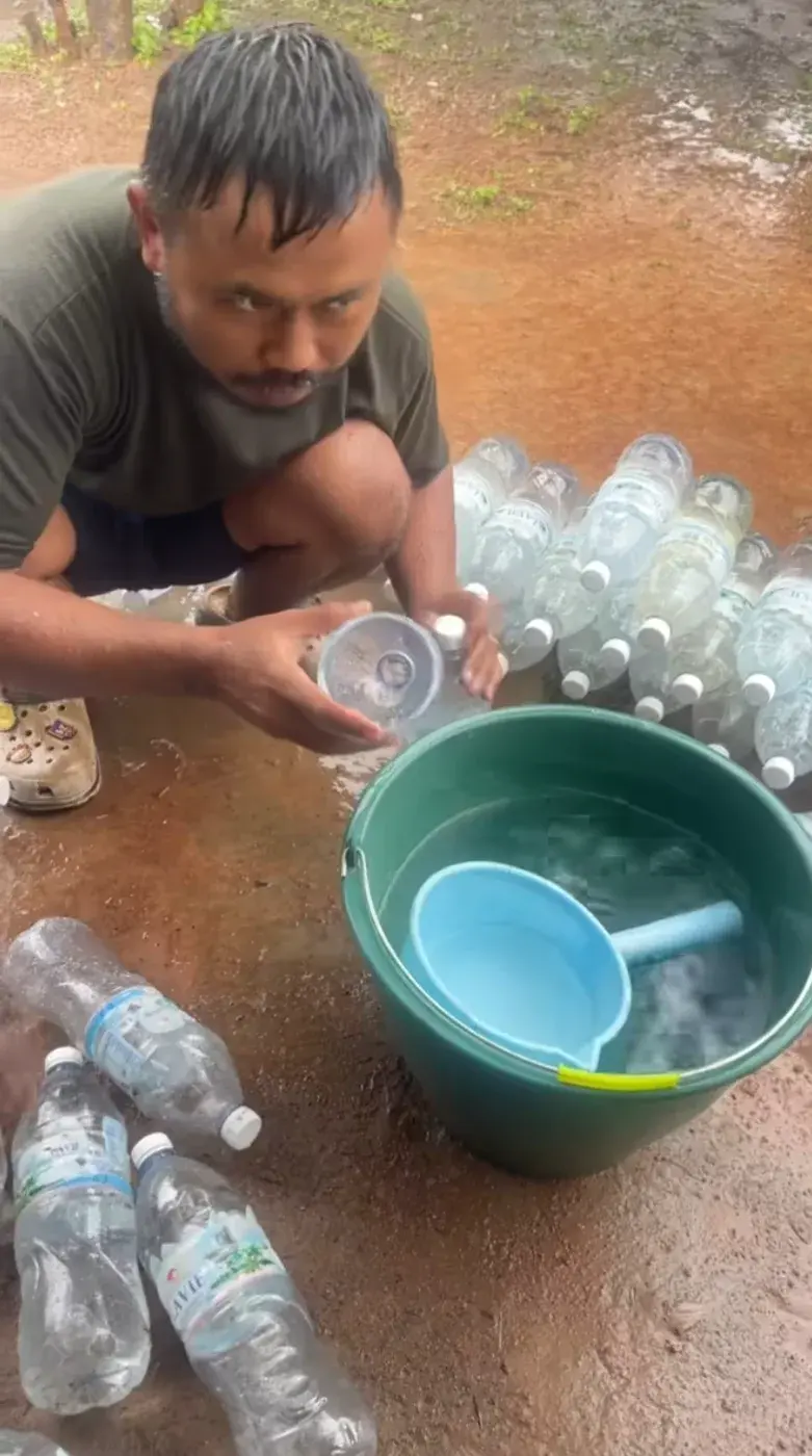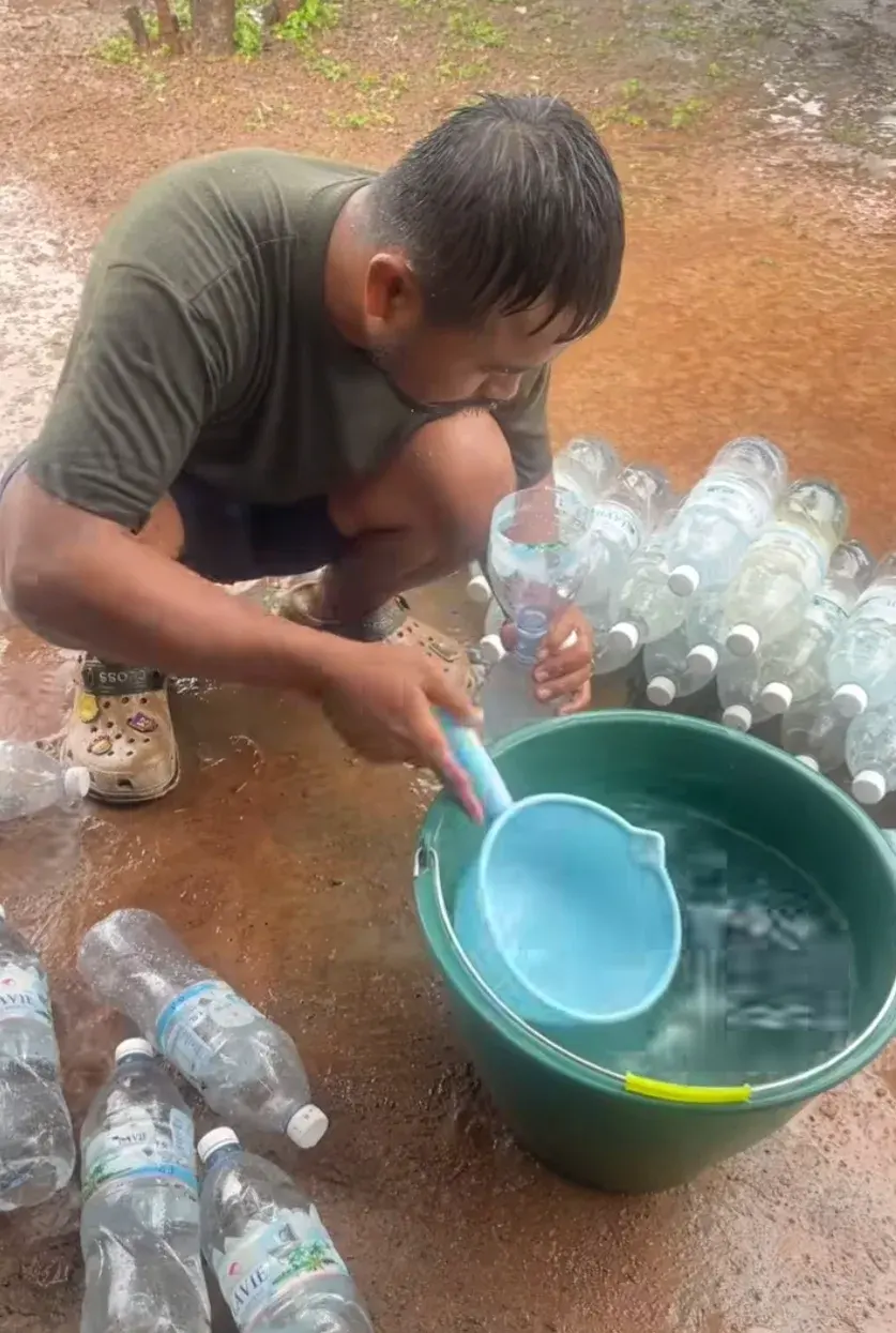 อนาถ ทหารเขมรแนวหน้ากรอกนํ้าฝนใส่ขวดเก็บไว้ดื่ม