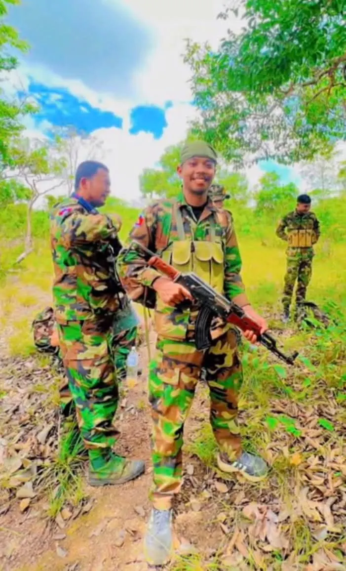 ทหารเขมรโพสต์ภาพเอานิ้วเข้าไก่ปืน พร้อมแคปชั่น "จัดสักตั้ง พวกเสียมอ่อน"