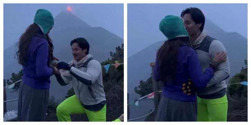 ภูเขาไฟระเบิดเป็นพยานในการขอแต่งงานสุดโรแมนติก