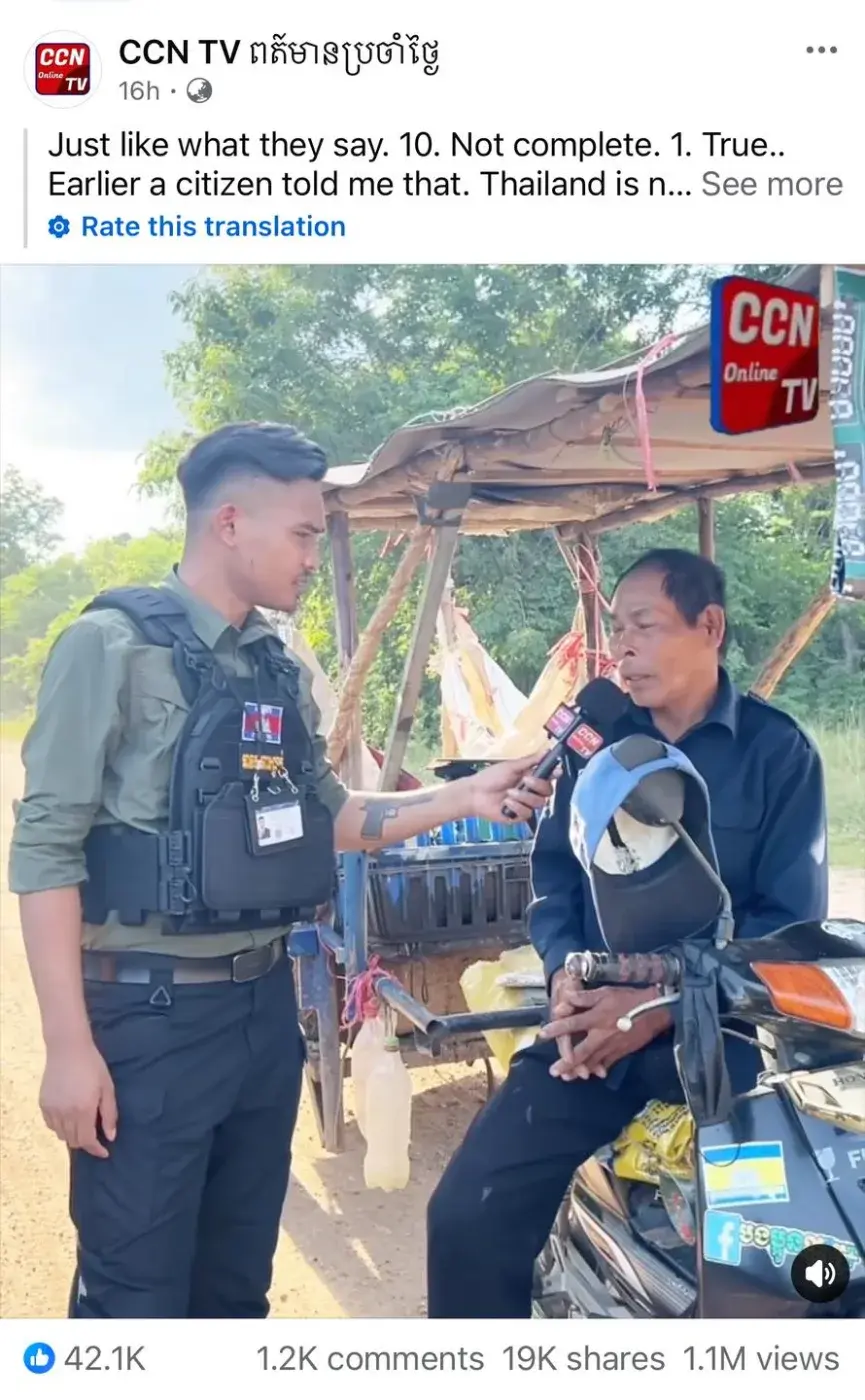 สำหรับวันนี้มาติดตามเรื่องราวของเพจ FACEBOOK ที่มีชื่อว่า The Wild Chronicles - ประวัติศาสตร์ ข่าวต่างประเทศ ท่องเที่ยวที่แปลก ได้ออกมาโพสต์ภาพพร้อมระบุข้อความ ทหารไทยไล่ที่ชาวบ้านเขมรที่มารุกล้ำนั้น ทำให้เกิดกระแสใหญ่ในหมู่เขมร โดยคนเขมรมีมุมมองว่าเสียดินแดน (ทั้งที่บริเวณที่ถูกไล่นั้นอยู่ในเขตไทย ไม่ใช่พื้นที่พิพาทไม่ว่าแผนที่มาตราส่วนไหน แต่ที่ผ่านมาไทยปล่อยปละละเลย และรัฐบาลเขมรสนับสนุน ชาวบ้านเขมรจึงเข้ามาอยู่กันเรื่อยๆ ดังนั้นในมุมมองฝ่ายไทย การไล่ที่ชาวบ้านไม่ได้แปลว่าชนะ เพียงแต่ทำสิ่งที่ควรทำมานาน และจริงๆ ยังไม่ได้ไล่อีกเยอะ)