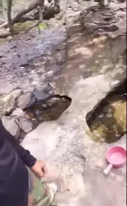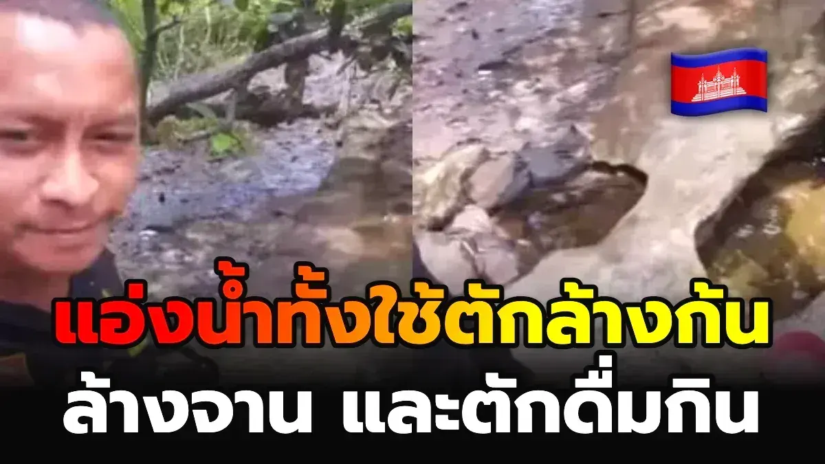 ทหารเขมรที่ฐานแนวหน้าถ่ายคลิปพามาดูแอ่งนํ้าใต้เชิงเขาพนมดงรักษ์ แบบ 3 in 1 ใช้ขันใบเดียวกัน ทั้งตักล้างก้น, ตักล้างจานและตักดืมกิน