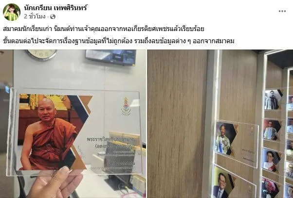 สมาคมนักเรียนเก่าเทพศิรินทร์ ปลดหลวงพ่ออลงกต ออกจากหอเกียรติยศเพชรเทพศิรินทร์ หลังพบข้อมูลผิดพลาด