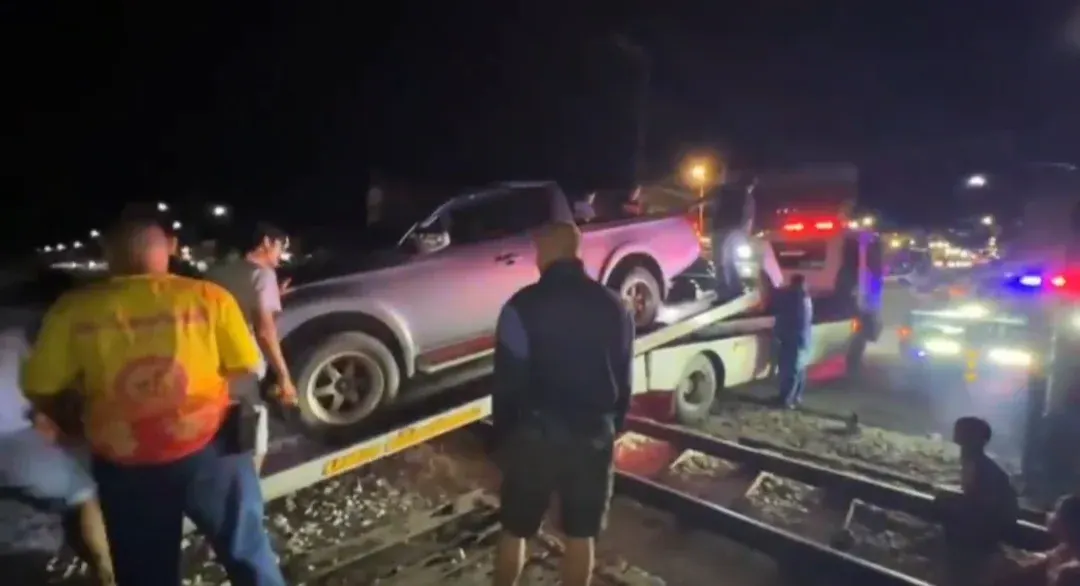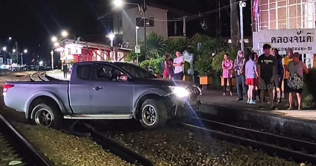 เมื่อเวลา 21.00 น.วันที่ 21 สิงหาคม 2568 ตำรวจ สภ.ฉวาง จ.นครศรีธรรมราช ได้รับแจ้งเหตุรถกระบะเสียหลักพุ่งข้ามถนนคร่อมรางรถไฟคลงจันดี ต.จันดี อ.ฉวาง จีงรีบเดินทางไปตรวจสอบ เมื่อถึงที่เกิดเหตุพบรถกระบะยี่ห้ออีซูซุ ดีแม็ก สภาพเสียหลักพุ่งข้ามถนนทะลุแผงกั้น ของสถานีรถไฟ ก่อนจะคร่อมบนรางขบวนรถไฟที่ 3 ตรวจสอบในรถพบคนขับเป็นชาย มีอาการมึนงง พูดจาไม่รู้เรื่องได้บาดเจ็บเล็กน้อย จึงนำตัวส่งโรงพยาบาล ให้แพทย์ตรวจรักษา ก่อนจะสอบสวนสาเหตุ ก่อนประสานรถยกเข้าทำการกู้รถกระบะออกจากรางขบวนรถไฟ