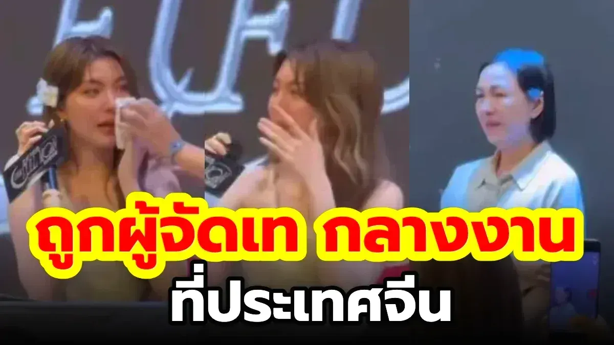 ดราม่า นักแสดงสาว ออม กรณ์นภัส กอดแม่ก้อยปล่อยโฮกลางแฟนไซน์ที่จีน