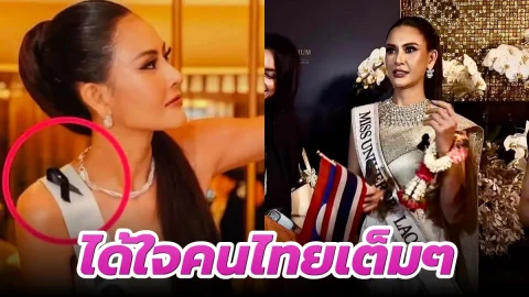 มิสยูนิเวิร์สลาว ‘รัตนา มั่นวิไล’ ได้ใจคนไทยเต็มๆ ติดโบว์ดำไว้อาลัยพระพันปีหลวงทุกครั้งบนเวทีโลก