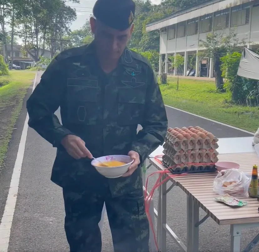 เขายังพูดติดตลกว่า หากมีโอกาส อยากจะไปทำ “ไข่เจียว” ให้เชลยศึกทั้ง 18 นายรับประทาน เพื่อสร้างบรรยากาศที่ผ่อนคลายและเป็นมิตร ซึ่งคำพูดเชิงเปรียบเทียบนี้ก็ทำให้หลายคนโยงไปถึงดราม่า “ไข่เจียวปู 4,000 บาท” ที่เป็นกระแสอยู่ในโลกออนไลน์ช่วงเดียวกัน