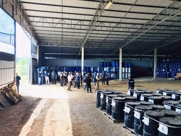 สารเคมีเหล่านี้จัดเป็น “วัตถุอันตราย” และบางชนิดสามารถนำไปเป็นสารตั้งต้นในการผลิตยาเสพติดประเภท “ยาบ้า” และ “ยาไอซ์” ได้ จึงมีการอายัดไว้เป็นของกลาง พร้อมส่งมอบให้กรมโรงงานอุตสาหกรรมเก็บรักษาตามขั้นตอนของกฎหมาย