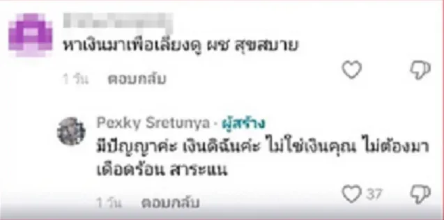 แต่ล่าสุดเมื่อ 21 สิงหาคม 2568 เป็กกี้ ศรีธัญญา กลับถูกชาวเน็ตคอมเมนต์แซะเธอว่า " หาเงินมาเพื่อเลี้ยงดูผู้ชาย สุขสบาย "