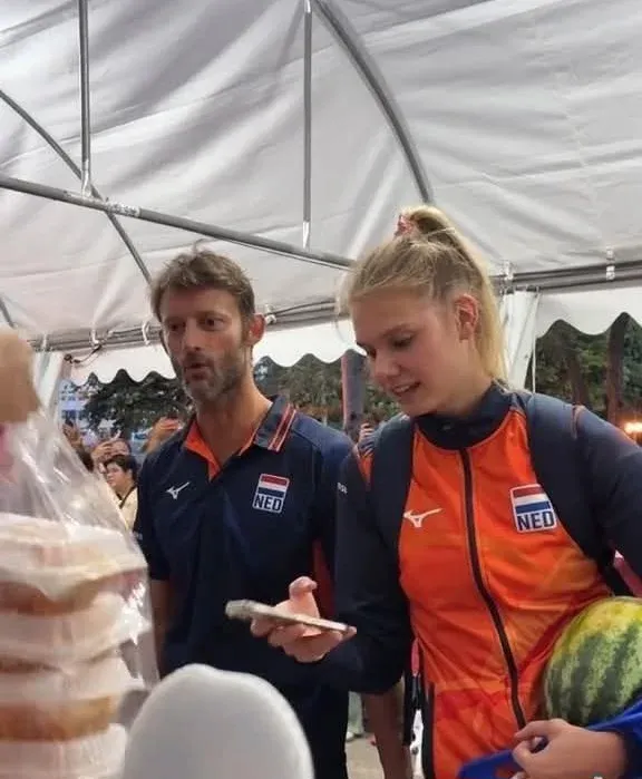 ท่ามกลางเสียงหัวเราะและบรรยากาศสุดเป็นกันเอง 🍉 Eline ถึงกับเกือบทำแตงโมหลุดมือ ทำเอากองเชียร์รอบข้างยิ่งเอ็นดูเข้าไปใหญ่ งานนี้นอกจากจะเป็นการส่งกำลังใจแล้ว ยังสะท้อนถึงมิตรภาพที่อบอุ่นระหว่างนักกีฬาและแฟน ๆ ชาวไทยที่ขึ้นชื่อเรื่องความน่ารักและการต้อนรับเป็นอย่างดี