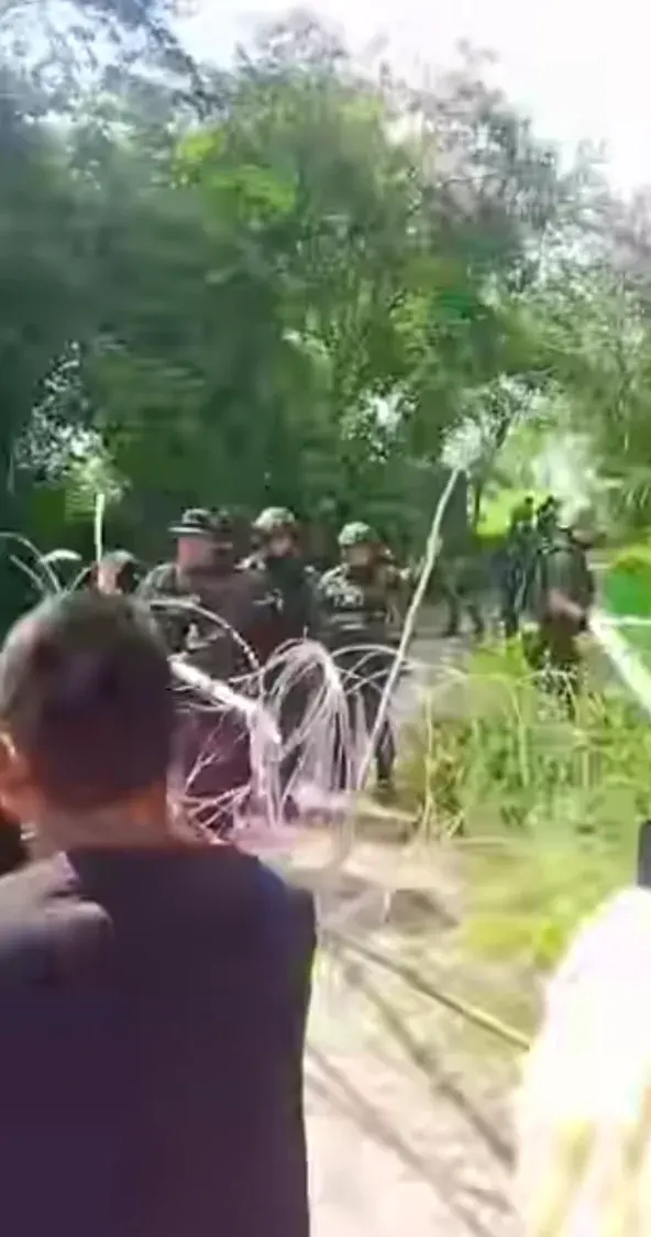 ทหารเขมรเกณฑ์ชาวบ้านเขมรบุกรื้อลวดหนามหีบเพลงและยางยนต์ รวมทั้งทำลายสแลนสีดำที่ทหารไทยได้ขึงไว้เป็นอาณาเขตเพื่อมิให้ชาวเขมรรุกลํ้าอธิปไตยผืนแผ่นดินไทย ณ บริเวณบ้านหนองจาน อ.โคกสูง จ.สระแก้ว สถานการณ์กำลังตรึงเครียดหนัก อย่างไรก็ตาม พบว่าทหารกัมพูชาใช้ชาวบ้านเขมรเป็นโล่ห์มนุษย์ มีการตะโกนทอด่าและยั่วยุทหารไทยด้วยถ้อยคำหยาบคาย หวังให้เกิดการปะทะกัน