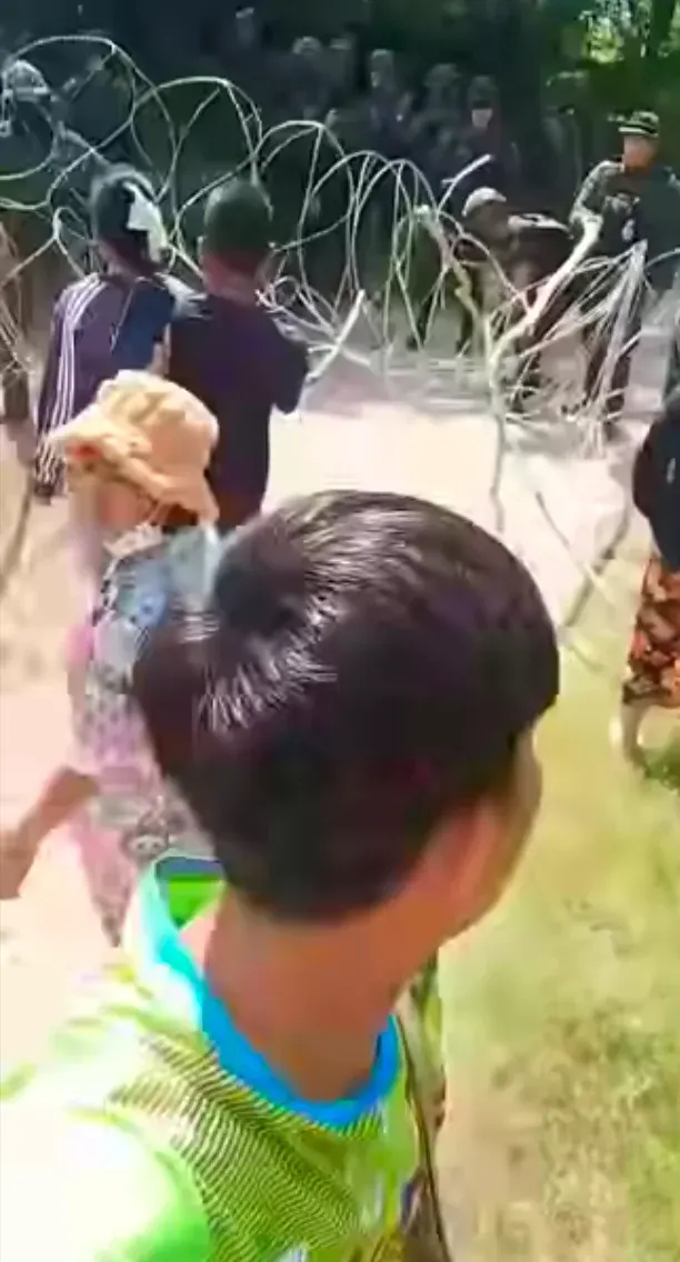 ทหารกัมพูชาเกณฑ์ชาวบ้านเขมรบุกรื้อลวดหนามหีบเพลงและยางยนต์ รวมทั้งทำลายสแลนสีดำที่ทหารไทยได้ขึงไว้เป็นอาณาเขต