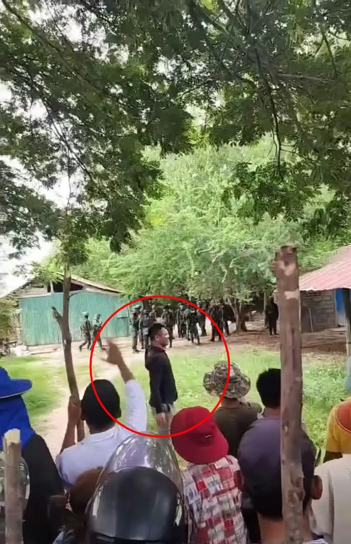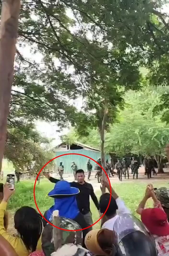 ทหารกัมพูชาหัวเกรียนถอดเครื่องแบบทหาร แปลงร่างเป็นพลเรือน โดยเป็นแกนนำร่วมกับชาวบ้านเขมร กดดันทหารไทย ณ บ้านหนองจาน