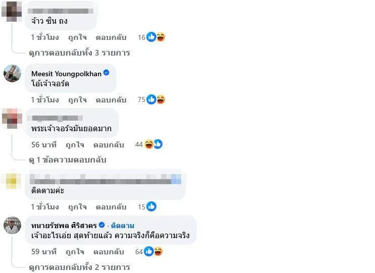 ผู้ติดตามหลายคนได้ร่วมแสดงความคิดเห็น เปรียบเทียบเหตุการณ์กับตัวละครในละครหรือภาพยนตร์ ด้วยการเรียกชื่อเล่น เช่น “พระเจ้าจอร์จ” หรือ “เจ้าคุณจอร์ช” ซึ่งทำให้โพสต์นี้ได้รับความนิยมและกระจายตัวในโซเชียลมีเดียอย่างรวดเร็ว