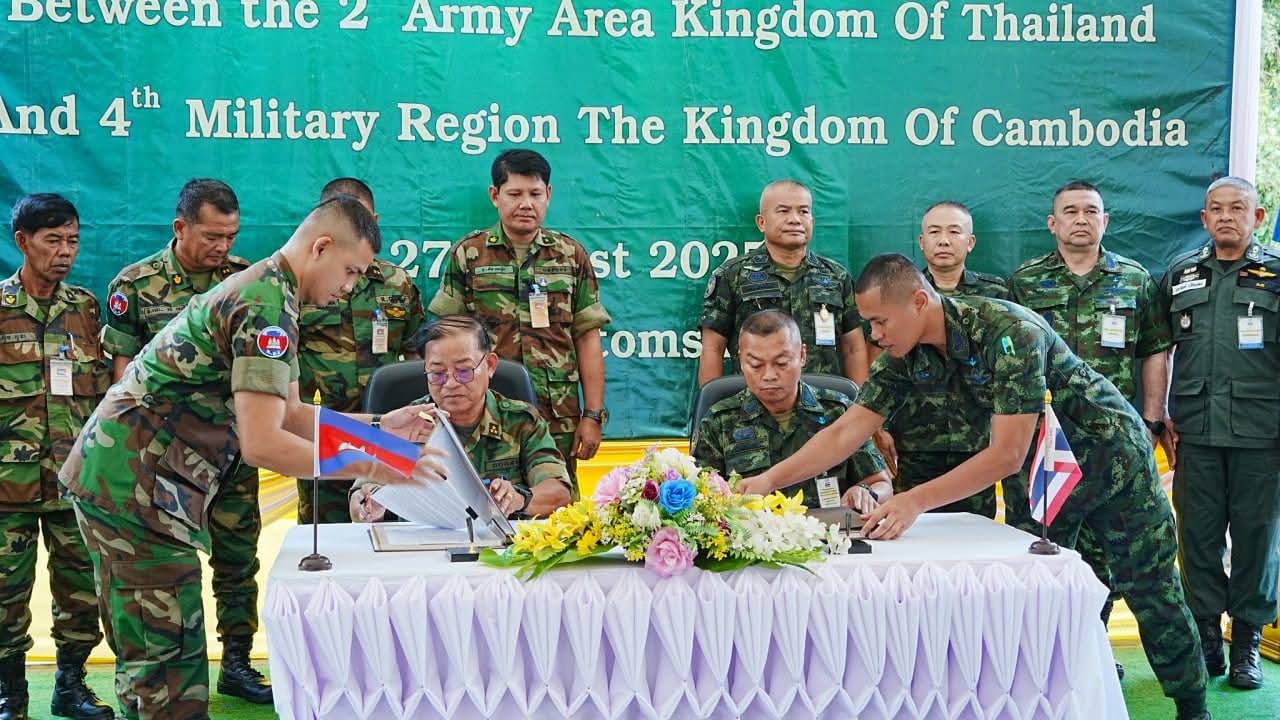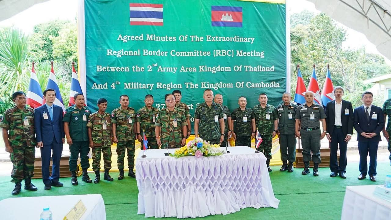 กระทรวงกลาโหมกัมพูชา ได้นำเสนอผลการประชุมวิสามัญของคณะกรรมการชายแดนเขตทหารกัมพูชา-ไทย (RBC) ระหว่างเขตทหารกัมพูชา 4 และเขตทหารไทย 2 เมื่อวันที่ 27 สิงหาคม 2568 ซึ่งฝ่ายไทยเป็นเจ้าภาพ