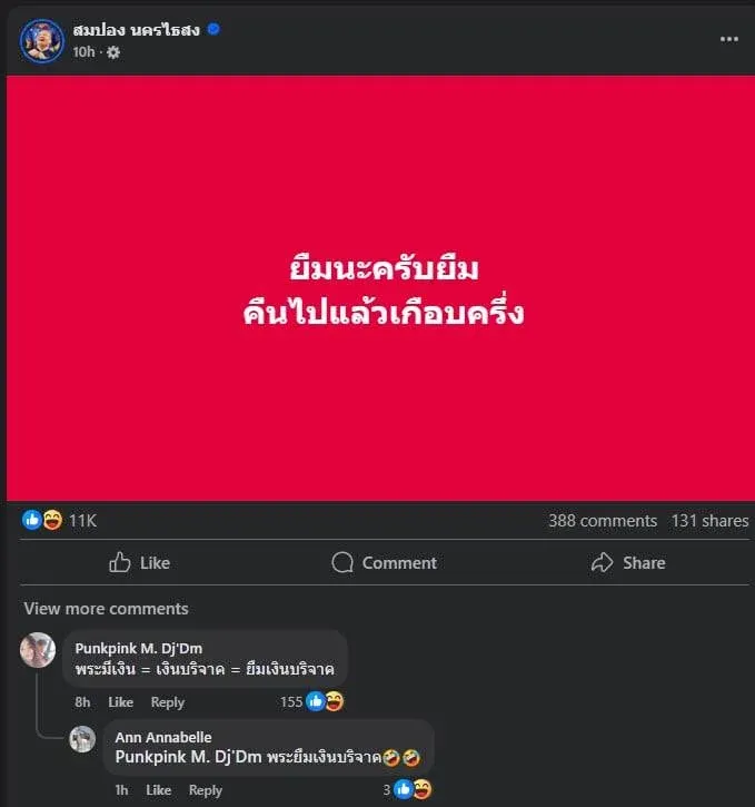โพสต์ของสมปองจึงไม่เพียงแต่เป็นเรื่องส่วนตัว แต่ยังสะท้อนถึง การเผชิญกับความจริงทางการเงินและการรับผิดชอบต่อสังคม